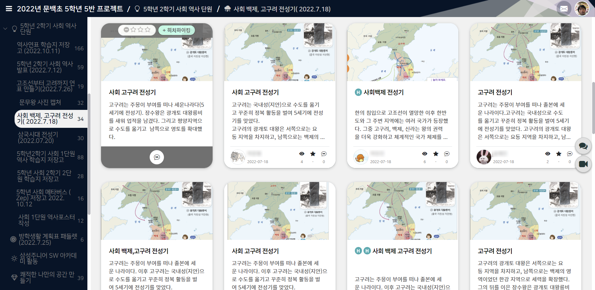- 학생들의 수행자료를 온라인에 모으는 공간 및 상호 평가를 할수 있는 공간으로 활용하였다.