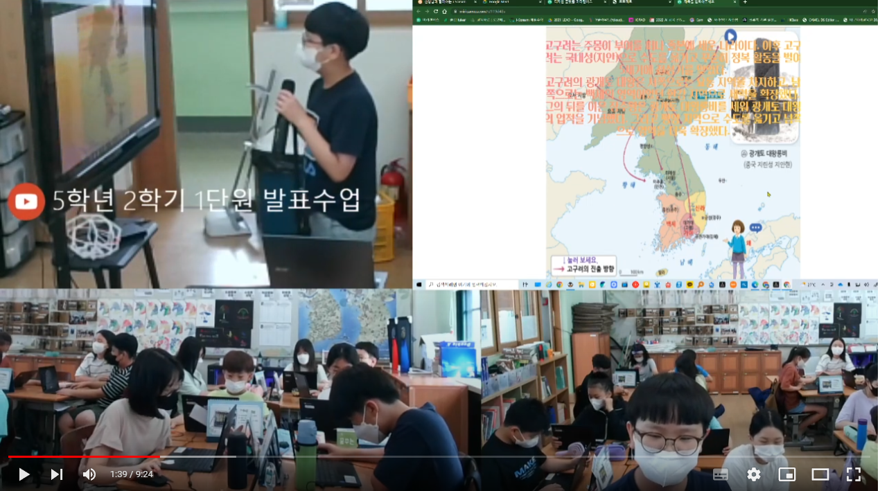 활용 내역: 1인 1디바이스를 통하여 초등학교 전교과에서 다양한 블랜디드 수업 도구로 활용 하였다.