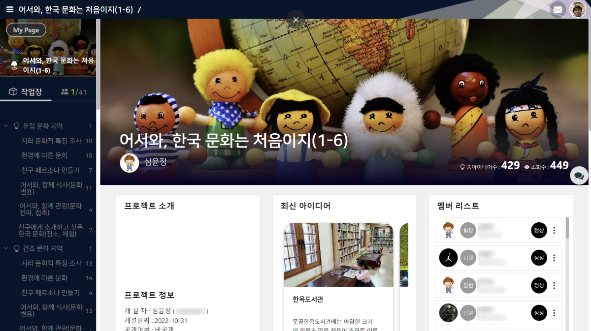 교사는 수업을 오랜 시간 준비하면서 프로젝트 활동을 잘 파악하게 되지만 학생들은 프로젝트 활동을 전달받는 과정에서 놓치는 부분들이 생기게 됩니다. 하지만 이번 프로젝트 활동은 플랫폼 메뉴로 구성했기 때문에 학생들이 활동 구조를 직관적으로 파악하기 쉬웠고, 진행 흐름에 대해 잘 이해했습니다.