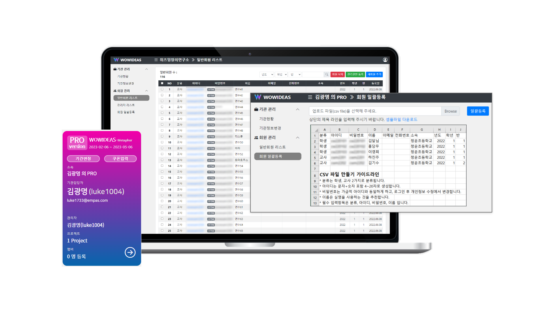 이에 저희는 학생관리 도구를 제공하여 일관된 아이디 체계로 교사가 학생멤버를 일괄 등록하고 체계적으로 멤버를 관리하며 비번초기화 등의 기능을 제공하여 수업 시간에 생길 수 있는 돌발상황에 대처할 수 있도록 하였습니다.